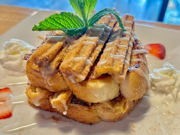 A special sweet French Toast with brown cinnamon and sugar churro.